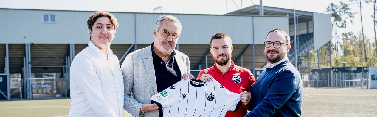 Bildunterzeile: (v.l.) Jakob Rell, (Associate Sales, Infront), Jens Hottel, (Referent Unternehmenskommunikation BKK Pfalz), Joshua Hillesheim (Organisatorischer Leiter Hardtwald-Campus), Sebastian Wöhle (Vertriebsleiter BKK Pfalz)