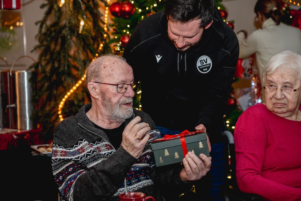 „Soziales Engagement in der Region ist seit Langem fester Bestandteil der täglichen Arbeit und Teil unseres Selbstverständnisses. Gerade an Weihnachten wollen wir Nähe spürbar machen und zeigen: Niemand wird übersehen. Umso mehr danken wir allen, die diese Aktion unterstützt haben – die Resonanz zu dieser Aktion ist außergewöhnlich“, sagt SVS-Geschäftsführer Volker Piegsa. Die Geschenke wurden am Mittwoch, 17. Dezember, an die beteiligten Einrichtungen übergeben. Eine Seniorin brachte es mit wenigen Worten auf den Punkt: „Es geht nicht ums Geschenk. Es tut gut, nicht vergessen zu werden.“ Andere freuten sich über liebevoll verpackte Geschenke und nahmen die kleinen Aufmerksamkeiten sichtlich gerührt mit Tränen in den Augen entgegen. Unter den Bewohnern des Generationenhauses St. Ilgen ist ein echter SVS-Fan, der sich im Namen aller Bewohnerinnen und Bewohner bedankte und SVS-Profi Robin Krauße stellvertretend für die Mannschaft, viel Erfolg in im neuen Jahr wünschte.